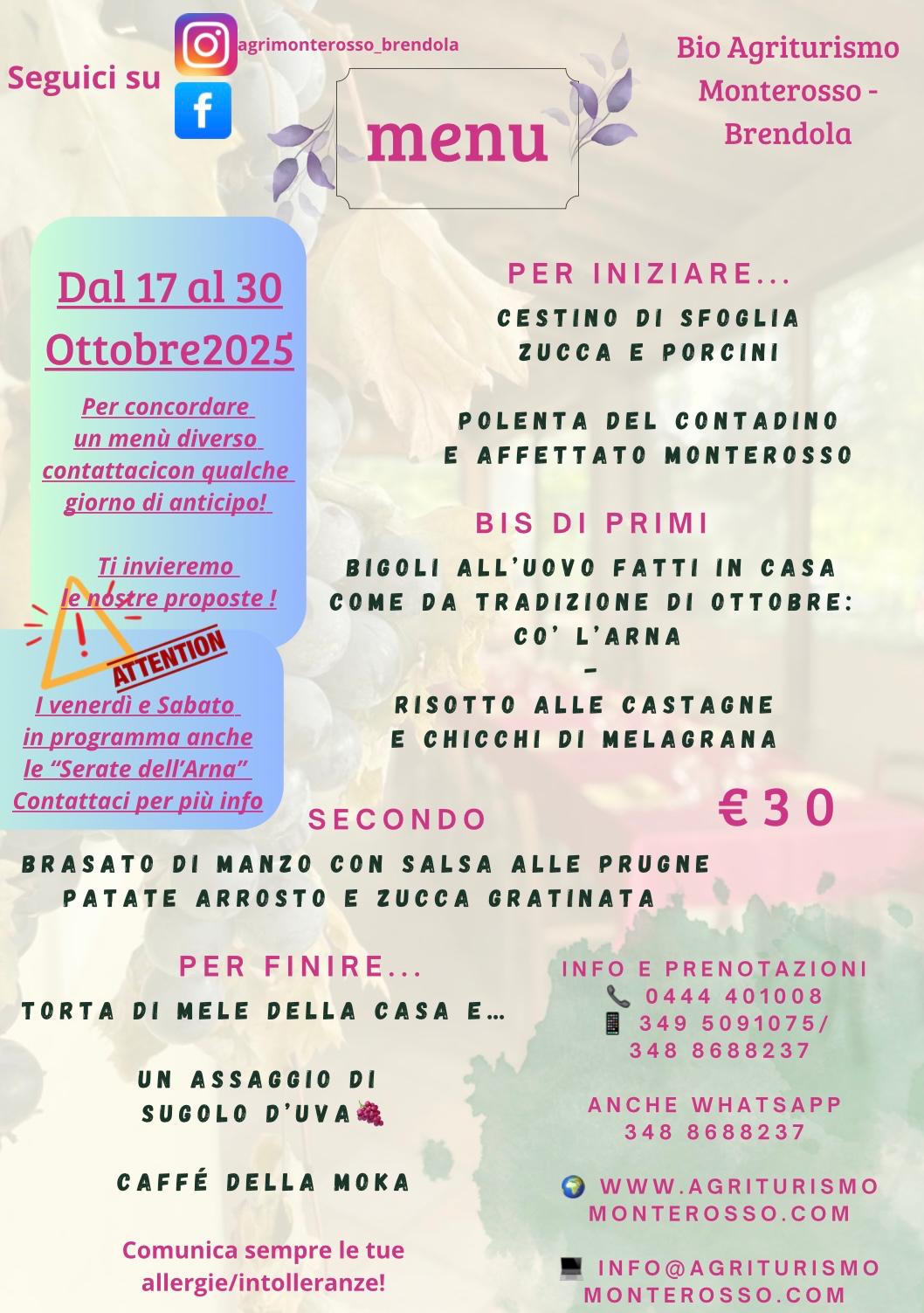 L'azienda Agrituristica Monterosso di circa 6 ettari, immersa nel verde, si colloca stupendamente sulle verdeggianti e panoramiche colline di Brendola, vengono coltivati con metodo di agricoltura biologica la vite e varie specie fruttiferi, oltre agli ortaggi.Vengono inoltre allevati animali di bassa corte e maiali. É possibile visitare la fattoria dopo un'entusiasmante passeggiata tra i campi.